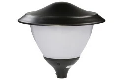 Lampa parkowa posiada daszek, który chroni żarówkę przed bezpośrednim działaniem czynników zewnętrznych, wydłużając jej żywotność.