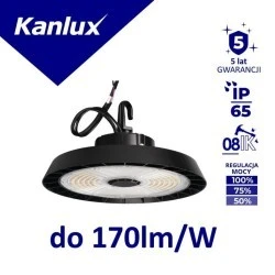 Oprawa LED high bay, Średnica [mm]: 336, Wysokość [mm]: 115, Barwa światła: biała, Częstotliwość znamionowa [Hz]: 50, Długość przewodu [m]: 0.3, Ilość cykli wł/wył: ≥25000, Jednolitość barw [SDCM]: 6, Kąt świecenia [°]: 90, Klasa ochronności przed porażeniem elektrycznym: I, Kolor: czarny, Materiał obudowy: stop aluminium, Materiał szyby ochronnej: tworzywo sztuczne, Miejsce montażu: do nadbudowania na suficie, Miejsce zastosowania: wewnątrz i na zewnątrz, Minimalna odległość od oświetlanego obiektu: 1m, Moc maksymalna [W]: 200 / 150 / 100, Możliwość współpracy ze ściemniaczem: 1-10V, Napięcie znamionowe [V]: 220-240 AC, Rodzaj diody: LED SMD, Rodzaj przewodu: H05RN-F, Rodzaj przyłącza: wolne końce przewodów, Stopień IK: 08, Stopień IP: 65, Strumień świetlny oprawy [lm]: 34000 / 25500 / 17000, Przekrój przewodu [mm2]: 1, Temperatura barwowa [K]: 4000, Trwałość [h]: 50000, Współczynnik oddawania barw Ra: 80, Zakres temperatury otoczenia, na którą może być narażony wyrób [°C]: -30÷50, Zawartość rtęci: nie, Zintegrowane źródło światła LED: 1, Zastosowana technologia oświetleniowa: LED, Bezkierunkowe lub kierunkowe źródło światła: NDLS, Źródło światła zasilane lub niezasilane napięciem sieciowym: MLS.