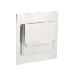 Oprawa dekoracyjna LED przyschodowa, obudowa stal nierdzewna szlifowana, zasilanie 12V DC, moc 0,8W, strumień światła 14lm, źródło światła LED SMD (w komplecie), barwa neutralna Tc 4000K, Ra ≥80, trwałość 50000h, ilość cykli wł/wył 20000; IP 20. Kolor stal nierdzewna.