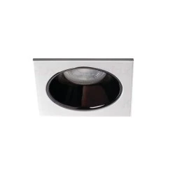 Pierścień ozdobny kwadratowy, napięcie znamionowe: 12AC, 12DC, 220-240AC; moc max 10W, źródło światał: MR16/PAR16; trzonek: Gx5,3/GU10; II/III klasa ochronności przed porażeniem elektrycznym; brak regulacji kątowej oprawy; IP20, materiał obudowy: stop aluminum; kolor czarny/biały.