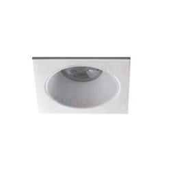 Pierścień ozdobny kwadratowy, napięcie znamionowe: 12AC, 12DC, 220-240AC; moc max 10W, źródło światał: MR16/PAR16; trzonek: Gx5,3/GU10; II/III klasa ochronności przed porażeniem elektrycznym; brak regulacji kątowej oprawy; IP20, materiał obudowy: stop aluminum; kolor biały.