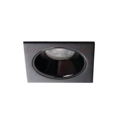Pierścień ozdobny kwadratowy, napięcie znamionowe: 12AC, 12DC, 220-240AC; moc max 10W, źródło światał: MR16/PAR16; trzonek: Gx5,3/GU10; II/III klasa ochronności przed porażeniem elektrycznym; brak regulacji kątowej oprawy; IP20, materiał obudowy: stop aluminum; kolor czarny.