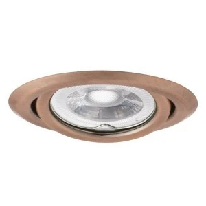 Pierścień oprawy punktowej bez oprawki, Średnica [mm]: 97, Wysokość [mm]: 24, Klasa ochronności przed porażeniem elektrycznym: II/III, Kolor: miedź matowa, Konieczność stosowanie lamp samoekranujących: 1, Materiał obudowy: stal, Miejsce montażu: do wbudowania w sufit, Miejsce zastosowania: wewnątrz, Minimalna odległość od oświetlanego obiektu: 0,5m, Moc maksymalna [W]: max 10, Napięcie znamionowe [V]: 12 AC; 12 DC; 220-240 AC, Wielkość otworu montażowego [mm]: Ø80-90, Regulacja kątowa oprawy oświetleniowej [°]: 15, Regulacja kątowa oprawy oświetleniowej: w jednej osi, Stopień IP: 20, Trzonek: Gx5,3/GU10, Wyrób nie nadający się do okrywania materiałem termoizolacyjnym: 1, Zakres temperatury otoczenia, na którą może być narażony wyrób [°C]: 5÷25, Źródło światła: MR16/PAR16, Źródło światła w komplecie: nie.