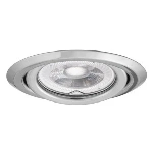 Pierścień oprawy punktowej ruchomy bez oprawki, Średnica [mm]: 97, Wysokość [mm]: 24, Klasa ochronności przed porażeniem elektrycznym: II/III, Kolor: chrom, Konieczność stosowanie lamp samoekranujących: 1, Materiał obudowy: stal, Miejsce montażu: do wbudowania w sufit, Miejsce zastosowania: wewnątrz, Minimalna odległość od oświetlanego obiektu: 0,5m, Moc maksymalna [W]: max 10, Napięcie znamionowe [V]: 12 AC; 12 DC; 220-240 AC, Wielkość otworu montażowego [mm]: Ø80-90, Regulacja kątowa oprawy oświetleniowej [°]: 15, Regulacja kątowa oprawy oświetleniowej: w jednej osi, Stopień IP: 20, Trzonek: Gx5,3/GU10, Wyrób nie nadający się do okrywania materiałem termoizolacyjnym: 1, Zakres temperatury otoczenia, na którą może być narażony wyrób [°C]: 5÷25, Źródło światła: MR16/PAR16, Źródło światła w komplecie: nie.