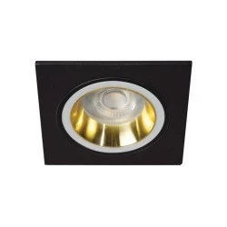 Pierścień oprawy punktowej bez oprawki, Długość [mm]: 92, Szerokość [mm]: 92, Wysokość [mm]: 25, Klasa ochronności przed porażeniem elektrycznym: II/III, Kolor: złoty / czarny, Materiał obudowy: stop aluminium, Miejsce montażu: do wbudowania w sufit, Miejsce zastosowania: wewnątrz, Minimalna odległość od oświetlanego obiektu: 0,5m, Moc maksymalna [W]: max 10, Napięcie znamionowe [V]: 12 AC; 12 DC; 220-240 AC, Wielkość otworu montażowego [mm]: Ø77, Regulacja kątowa oprawy oświetleniowej: brak, Stopień IP: 20, Trzonek: Gx5,3/GU10, Wyrób nie nadający się do okrywania materiałem termoizolacyjnym: 1, Zakres temperatury otoczenia, na którą może być narażony wyrób [°C]: 5÷25, Źródło światła: MR16/PAR16, Źródło światła w komplecie: nie.
