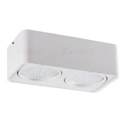 Sufitowa oprawa punktowa, zasilanie 220-240V~, 50Hz; moc 2 x max 25W, źródło światła ES-111, trzonek GU10, oprawa ruchoma w zakresie wertykalnym w dwóch osiach po 20°, IP 20, kolor biały.