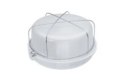 Podstawa oprawy wykonana jest z białego BAKELITU, klosz szklany-matowy, koszyk stalowy.