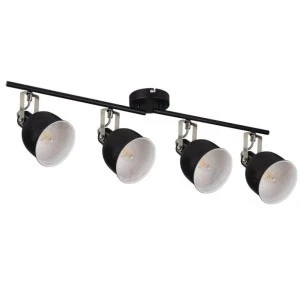 Oprawa ścienno-sufitowa, zasilanie 220-240V AC; 50Hz, 4x max 8W, trzonek E14, regulacja horyzontalna 350°, regulacja wertykalna 110°, IP 20, kolor czarny/srebrny.