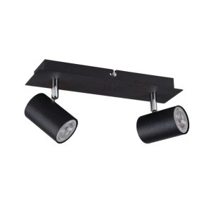 Oprawa ścienno-sufitowa, zasilanie 220-240V AC; 50Hz, 2x max 10W, trzonek GU10, źródła światła PA16; regulacja horyzontalna 320°, regulacja wertykalna 90°, IP 20, kolor czarny.