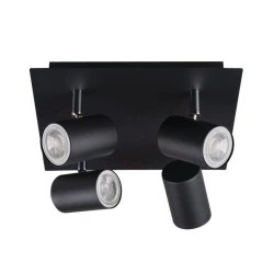 Oprawa ścienno-sufitowa, zasilanie 220-240V AC; 50Hz, 4x max 10W, trzonek GU10, źródła światła PA16; regulacja horyzontalna 320°, regulacja wertykalna 90°, IP 20, kolor czarny.