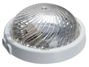 Podstawa oprawy wykonana jest z białego polipropylenu, klosz z przeźroczystego poliwęglanu.