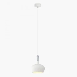 Lampa wisząca wykonana z gipsu w kolorze białym o prostej formie! Taka lampa wisząca to bardzo szerokie możliwości aranżacyjne - można zawiesić ją pojedynczo, jak i w szeregu kilku lamp obok siebie.