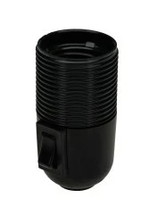 Oprawka E27 gwintowana z wyłącznikiem kołyskowym, metalowym wkładem M10x1 i terminalem zaciskowym - śrubowym.