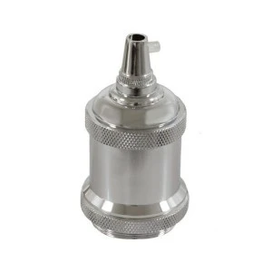 Zestaw do samodzielnego montażu. Oprawka - Creative Cables E27 z aluminium w stylu vintage. Zestaw składa się z: - 1 uchwytu lampy E27 z tworzywa termoplastycznego z certyfikatem IMQ ENEC Made in Italy - 1 Aluminiowy korpus - 1 Plastikowy zacisk i metalowe zamknięcie z chromowanym wykończeniem Wymiary: Średnica: 50 mm. Wysokość: 72 mm. Oprawka nie nadaje się do abażuru, których obszar mocowania jest większy niż 5 mm grubości.