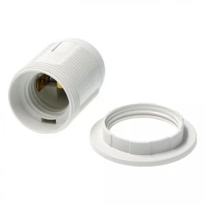 Oprawka żarówki to element elektryczny, który służy do montażu i połączenia żarówki z przewodem elektrycznym w celu dostarczenia jej zasilania. Oprawka plastikowa z kołnierzem do żarówek z gwintem E27 (duży gwint). Oprawa pozwala skutecznie zamontować żarówkę z gwintem E27 np. podczas wykonywania remontu.