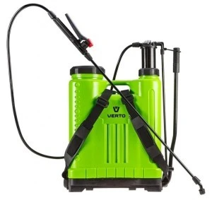 Opryskiwacz ciśnieniowy VERTO (nr ref. 15G508) o pojemności 20 litrów. Ciśnienie robocze 2.5 - 3.5 bara. Szeroka szyjka ułatwia napełnianie butli. Szelki umożliwiające zawieszenie zraszacza na plecach oraz blokada strumienia podnoszą komfort pracy. Opryskiwacz można stosować w zakresie temperatur od 0 do + 45°C.