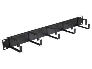 Wyposażony jest w pięć metalowych haczyków / uchwytów do ułożenia kabli.