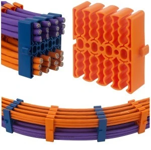 - Unikalna konstrukcja umożliwia ułożenie do 24 kabli w grupach po 3 sztuki bez konieczności skręcania wiązek (od końca lub środka)