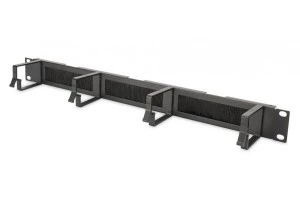 Organizator kablowy ze szczotką 19 1U 4x uchwyty aluminiowe 44x72mm czarny DN‑97663