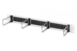 Przejrzyste i uporządkowane prowadzenie kabli jest jednym z najważniejszych aspektów efektywnej rozbudowy szafy. Panel do prowadzenia kabli firmy DIGITUS® posiada 4 stabilne stalowe uchwyty do efektywnego wykorzystania, nawet przy większych ilościach kabli. Pomiędzy stalowymi uchwytami znajduje się listwa szczotkowa, która wprowadza kable do szafy i w ten sposób optymalizuje zarządzanie kablami. Panel podstawowy jest malowany proszkowo w kolorze szarym (RAL 7035) lub czarnym (RAL 9005). W razie potrzeby stalowe uchwyty można zdemontować, aby elastycznie dostosować panel do różnych zastosowań.