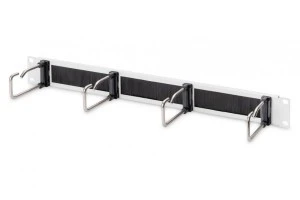 Organizator kablowy ze szczotką 19" 1U, 4x uchwytystalowe, 40x75 mm, szary