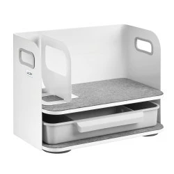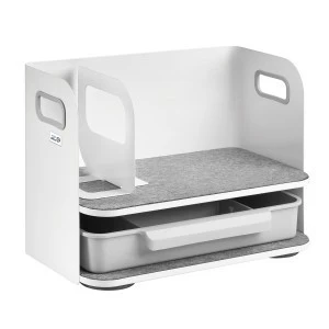 Wysokiej jakości, kompaktowy i pojemny organizer na biurko z szufladą i tacą z podpórką na książki. Dzięki licznym zastosowaniom organizer znajduje zastosowanie zarówno w domu, jak i w biurze czy szkole. Wysokiej jakości materiały pozwalają na nośność do 10 kg. Dzięki nowoczesnemu designowi organizer idealnie wpasuje się w każde otoczenie. Nie jest wymagany montaż, a organizer jest gotowy do natychmiastowego użycia.