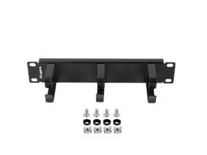 Organizer kabli 1U typu B marki Lanberg pasujący do szaf 10", wyposażony w 3 metalowe uchwyty służące do prowadzenia przewodów.