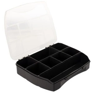 Wygodny i użyteczny organizer o wymiarach 190x155x37mm, który przyda się w domu, garażu, warsztacie - czyli wszędzie tam gdzie pożądany jest ład i porządek. Solidne przezroczyste wieczko na zatrzask umożliwia szybkie zlokalizowanie szukanego produktu bez konieczności otwierania oraz zabezpiecza organizer przed niepożądanym otwarciem. Bardzo praktyczny pojemnik umożliwiający segregację przedmiotów według indywidualnych potrzeb. Ten gadżet zaskarbi sobie przychylność każdego majsterkowicza! Organizer sprawdzi się jako idealnie miejsce do przechowywania szybkozłączek, końcówek kablowych, wtyków, przejściówek, konektorów i innych drobnych elementów. Jeżeli sięgasz po metalowe pudełko z myślą, że zjesz swoje ulubione ciastko a Twoim oczom ukazują się igły i nici. Czym prędzej powinieneś to zmienić - organizer można wykorzystać do przechowywania agrafek, igieł, guzików i innych krawieckich przedmiotów.