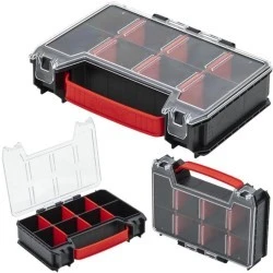 Qbrick System PRO Organizer 200 to uniwersalny i modułowy pojemnik na elektronarzędzia. Pojemnik ten gwarantuje bezpieczeństwo przechowywania oraz przenoszenia drogich i specjalistycznych narzędzi. Zawiera 8 komór do organizacji drobnych akcesoriów warsztatowych. Regulowane przegrody pozwalają na dowolną organizację wewnętrznej przestrzeni organizera. Z kolei poliwęglanowa pokrywa oraz wygodna rączka zapewniają trwałość i ergonomię pracy. Z pewnością znajdzie swoje zastosowanie: