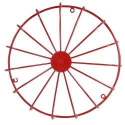 Dodatkowa osłona dzwonka szkolno-alarmowego duża (DNS-212D lub DNT-212D,idealna w przypadku użytkowania dzwonka w pomieszczeniach niestandardowych (np. sala gimnastyczna) w celu zabezpieczenia urządzenia przed uszkodzeniami mechanicznymi (np. uderzenie piłką),wykonana z drutu stalowego, lakierowanego na czerwono.
