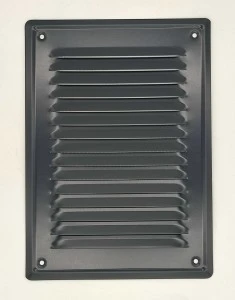 Metalowa płaska kratka ze skośnymi żeberkami i siatką przeciwko owadom. Wykonana z blachy cynkowanej malowanej na grafitowo. Powierzchnia zabezpieczona folią. Wersja z otworami – przykręcana. Zastosowanie typowo zewnętrzne, ściany, kominy. Skośne żeberka uniemożliwiają wpadanie deszczu czy śniegu.