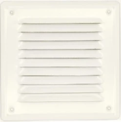 Metalowa płaska kratka ze skośnymi żeberkami i siatką przeciwko owadom. Wykonana z blachy cynkowanej malowanej na biało. Powierzchnia zabezpieczona folią. Wersja z otworami – przykręcana. Zastosowanie typowo zewnętrzne, ściany, kominy. Skośne żeberka uniemożliwiają wpadanie deszczu czy śniegu.