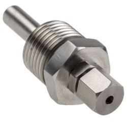 Stainless steel thermopockets of various sizes, designed for use with industrial style temperature probes to provide protection for the sheathing from corrosive media, and to facilitate probe replacement without disturbing the processFabricated 316 stainless steel thermopocket All welded construction Suitable with 3.0 or 6.0mm diameter probes 1/2”; BSP parallel process thread 25.4mm A/F hex (pockets to suit 6.0mm probe) 22mm A/F hex (pockets to suit 3.0mm probe) Supplied complete with stainless steel compression fitting to suit probe