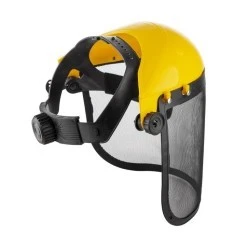 Maska ochronna (osłona „siatka”) to idealny środek ochrony indywidualnej (ŚOI) do wykonywania różnych prac ogrodniczych i roboczych, w tym obróbki drewna, koszenia trawy, a także pracy z kosami spalinowymi, narzędziami benzynowymi i elektrycznymi. Podstawa maski wykonana jest z wytrzymałego polichlorku winylu (PVC), a ekran z metalową siatką zapewnia skuteczną ochronę oczu i twarzy przed uszkodzeniami mechanicznymi, wytrzymując uderzenia drobnych twardych cząstek, trawy i wiórów. Dzięki systemowi zamków ekran jest zdejmowany, co pozwala na łatwą wymianę w przypadku zużycia. Dodatkową wytrzymałość i odporność na zużycie konstrukcji zapewnia specjalna lamówka na krawędzi osłony. Aby zapewnić komfort podczas długotrwałego użytkowania, przewidziano pałąk z miękką nakładką i trzema regulatorami do idealnego dopasowania rozmiaru.
