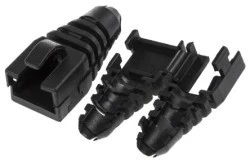 Zamontować ponownie osłony przeciwdeszczowe. Szare i czarne plastikowe osłony odciążające, które można zamontować w zespołach kabli/wtyków RJ45 w dowolnym momencie eksploatacji produktu. Składa się z formy motylkowej, jednoczęściowej formy, która zatrzaśnie się wokół wtyczki i kabla. Po zamontowaniu zapewnia zabezpieczenie przed uszkodzeniem wtyczki dźwiękowej i reduktor naprężeń kabla. Korzyści obejmują. Faster zespołu wtyk/kabel Łatwa aktualizacja istniejących instalacji kabli połączeniowych Wydłuża żywotność zespołu kabli