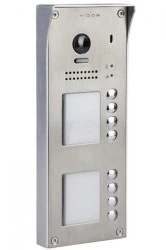 Ośmioabonentowa stacja bramowa z wbudowanym czytnikiem zbliżeniowym umożliwiającym otwieranie wejścia za pomocą karty lub breloków.