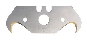 Ostrza hakowe wymienne NEO (nr ref. 64-620) o grubości 0.5 mm to wymienne części do noży. Krawędzie tnące pokryte tytanem, co przedłuża żywotność narzędzia. W komplecie znajduje się 5 sztuk. Marka NEO spełnia oczekiwania profesjonalistów.