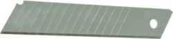 Umieść ostrze w prowadnicy odpowiedniego noża 18 mm. Po stępieniu końcówki złam segment przy użyciu funkcji łamania w rękojeści noża lub szczypiec. Uważaj na ostre krawędzie – zaleca się użycie rękawic roboczych i okularów ochronnych podczas wymiany ostrzy. Po użyciu przechowuj ostrza w oryginalnym pojemniku z tworzywa, z dala od dzieci.