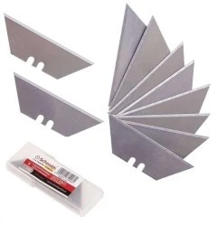 Komplet 10 stalowych ostrzy trapezowych stosowanych w nożach wysuwanych. Wykorzystywane do cięcia kartonów, tapet, wykładzin itp.