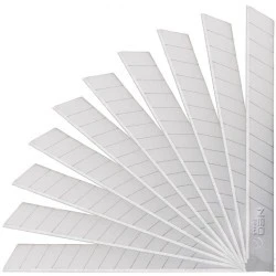 Ostrza wymienne łamane 9 mm NEO 64-210 to zestaw 10 niezwykle ostrych ostrzy wykonanych ze stali, przeznaczony do różnorodnych prac, takich jak cięcia w domu, warsztacie, na budowie.