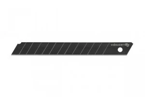Komplet 10 ostrzy łamanych 9 mm wykonanych ze specjalnego stopu stali SK2H dedykowanej do nożyków tnących. Szczególnie przydatne do prac wykończeniowych, cięcia kartonów, tapet, wykładzin, tkanin plandekowych, folii drukarskich oraz folii PVC itp.