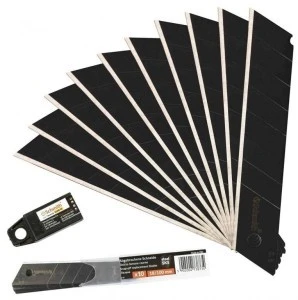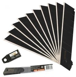 Komplet 10 stalowych ostrzy łamanych przeznaczony do stosowania w nożach z funkcją wysuwania. Produkt dedykowany jest do cięcia w materiałach: karton, tapeta, wykładzina, tkanina plandekowa, folia drukarska, folia PCV i innych.