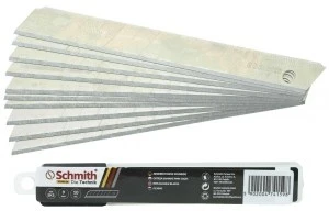 Komplet 10 stalowych ostrzy łamanych stosowanych w nożach wysuwanych.