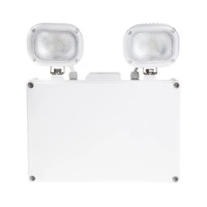 En 60598-1: 2008+A11: 2009 En 60598-2-22: 1998+A1: 2003+A2: 2008 BS EN 60598-1: 2008 BS EN 60598-2-22: 1998+A2: 2008 En 55015: 2006+A1: 2007+A2: 2009 En 61000-3-2: 2006+A2: 2009 En 61000-3-3: 2008 En 61547: 2009. Wskaźnik LED Emergency Twin Spotlight. Ten dwupunktowy test LED jest wyposażony w funkcję auto-testu co 90 dni, co zapewnia prawidłowe działanie. Diody awaryjne LED to ekonomiczna wymiana w przypadku tradycyjnych halogenowych, podwójnych opraw punktowych. Ze względu na niski pobór mocy przez diody LED wymagany jest tylko jeden akumulator, co zmniejsza zużycie energii podczas ładowania. Wyjątkowo jasne, regulowane głowice sprawiają, że ten podwójny punkt jest idealny do zastosowań komercyjnych i przemysłowych. Lekka konstrukcja ułatwia i przyspiesza instalację. Idealny zamiennik do podwójnych żył halogenowych w starym stylu Automatyczna kontrola umożliwia montaż w celu sprawdzenia prawidłowego działania co 90 dni Montaż obejmuje wskaźniki LED i wbudowany sygnalizator akustyczny, sygnalizujący stan lampy i ostrzegający o usterkach Wyjście białe (3500K) Głowice uchylno-obrotowe umożliwiają skierowanie światła w miarę potrzeby Durable korpus poliwęglanowy 3-godzinny czas trwania zagrożenia