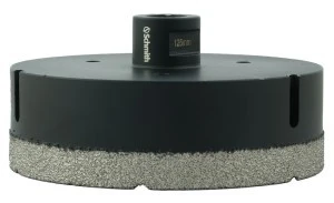 Otwornica diamentowa z uchwytem M14 do stosowania na sucho. Zastosowany gwint M14 pozwala na pracę z wykorzystaniem szlifierki kątowej.
