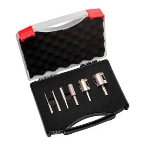 Dobrej jakości otwornice diamentowe to akcesoria przeznaczone do wykonywania otworów w kruchych i twardych materiałach. Ich konstrukcja umożliwia wiercenie nimi w kamieniach naturalnych, gresie i szkle. Posypka diamentowa na krawędziach ułatwia precyzyjne cięcie, a uchwyt cylindryczny umożliwia montaż do różnych wiertarek. Otwornice diamentowe są wykonane z jednego kawałka stali, co zapewnia dobre parametry wytrzymałościowe. Komplet zawiera 6 otwornic o różnych średnicach, które sprawdzają się do przeprowadzenia podstawowych prac. Całość znajduje się w pudełku z tworzywa sztucznego, dlatego otwornice diamentowe nie pogubią się nawet przy transporcie.