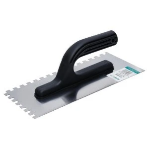 Uniwersalna paca nierdzewna o wymiarach 280 x 128 mm to narzędzie przydatne w szerokim zakresie prac budowlanych. Sprawdzi się do nakładania, rozprowadzania, zacierania i wyrównywania powierzchni pokrytych masami budowalnymi. Można wykorzystać ją do pracy z masami gipsowymi, tynkami, zaprawami murarskimi i wieloma innymi materiałami. Paca STALCO jest wykonana z blachy nierdzewnej o grubości 0,7 mm. Do operowania służy uchwyt z tworzywa sztucznego o ergonomicznej końcówce. Konstrukcja umożliwia prowadzenie prac w różnych płaszczyznach. Paca nierdzewna ma niewielkie wymiary, dlatego można nią wykonywać prace wymagające precyzji. W zależności od potrzeb można wybrać pacę o innej ilości zębów na każdej ze ścianek lub zakończoną gładkimi krawędziami.