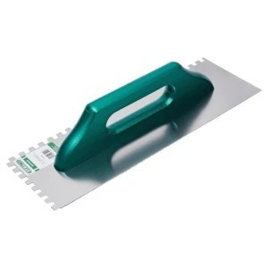 Uniwersalna paca nierdzewna 380 x 130 mm to narzędzie przeznaczone do różnorodnych prac budowlanych. Przydaje się przy tynkowaniu, murowaniu i nakładaniu gładzi wewnątrz budynków. Za pomocą pacy można nakładać i rozprowadzać materiał, a także zmieniać jego strukturę. W zależności od sposobu wykończenia pacy można nią gładzić lub formować powierzchnię. Paca nierdzewna STALCO jest narzędziem bardzo trwałym. Stal nierdzewna ma wysokie parametry odporności na uszkodzenia mechaniczne i korozję. Drewniany lakierowany chwyt nie chłonie wilgoci i środków chemicznych. Po dokładnym wyczyszczeniu pacę można z powodzeniem zastosować do kolejnych zadań. W ofercie STALCO przygotowano pace zakończone krawędziami gładkimi i ząbkowanymi o różnych wymiarach zębów.