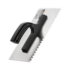 Profesjonalna szpachelka zębata przeznaczona do nakładania klejów podczas montażu płytek ceramicznych, płyt gipsowo-kartonowych oraz innych materiałów budowlanych. Idealnie sprawdzi się przy układaniu płytek o wymiarach do 30×30 cm i grubości od 10 mm wzwyż.