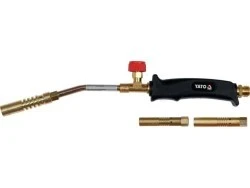 Palnik do lutowania z trzema okrągłymi mosiężnymi dyszami o średnicach: 17, 14, 13 mm.